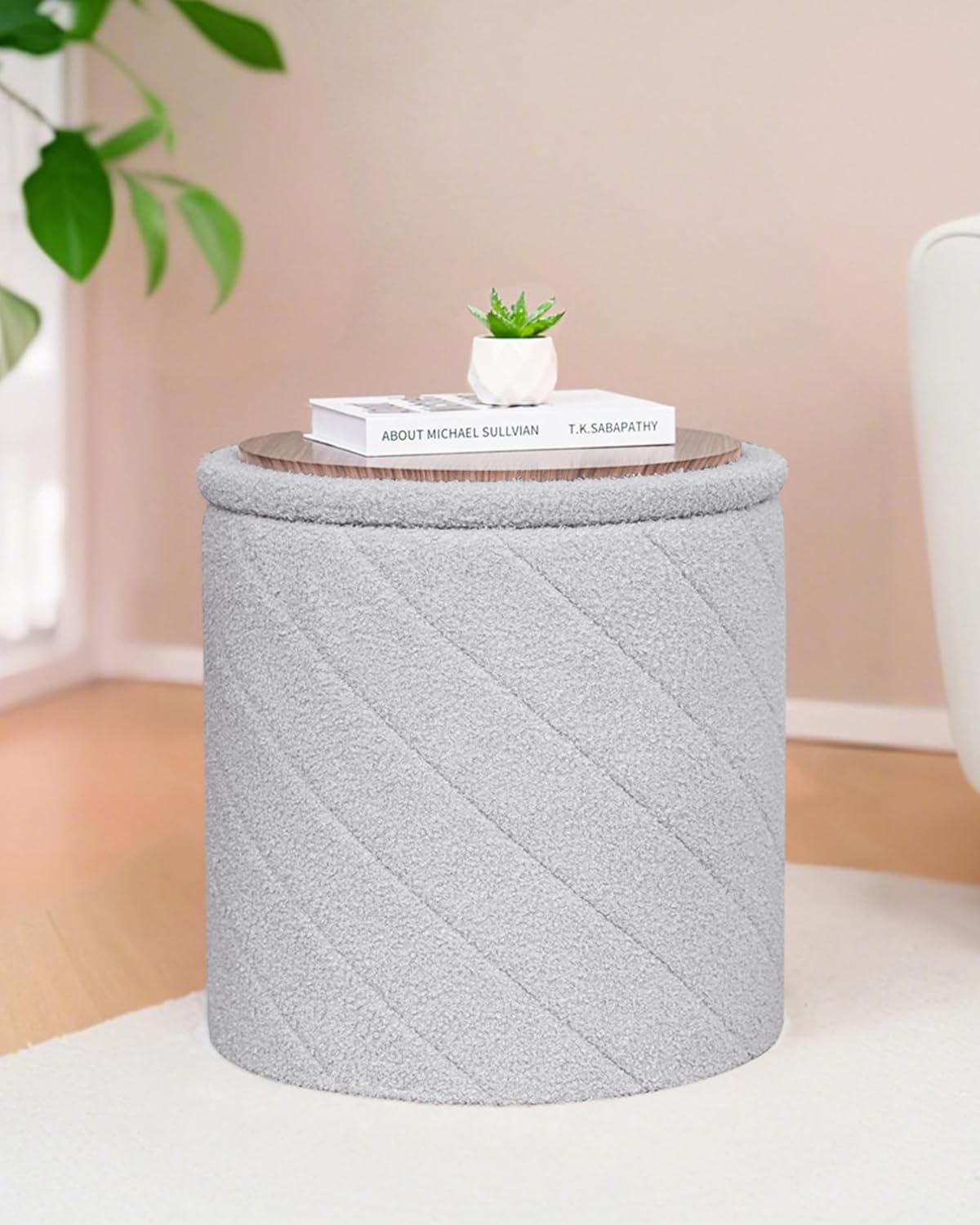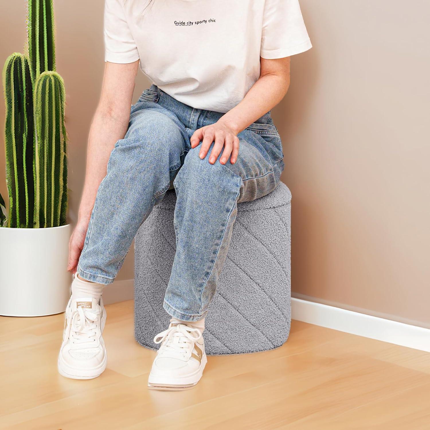 Modern & Chic aesthetic: The round shape combined with subtle twill lines gives this faux teddy stool a modern yet minimalist vibe. Its charming design adds a touch of warmth and style to any room