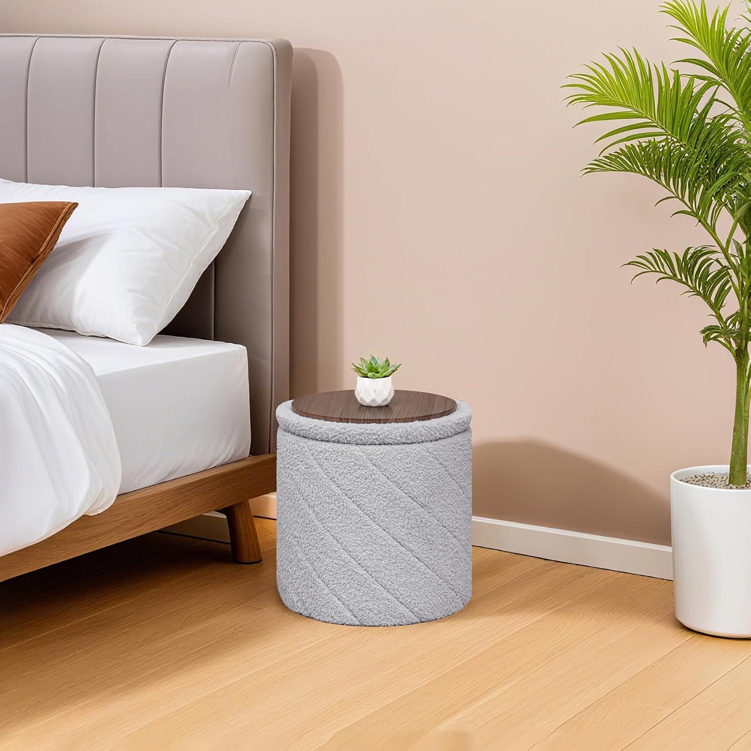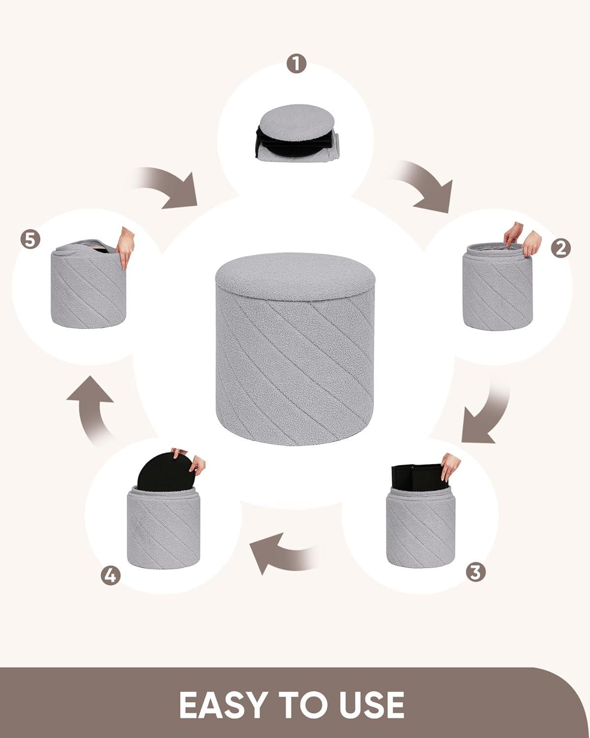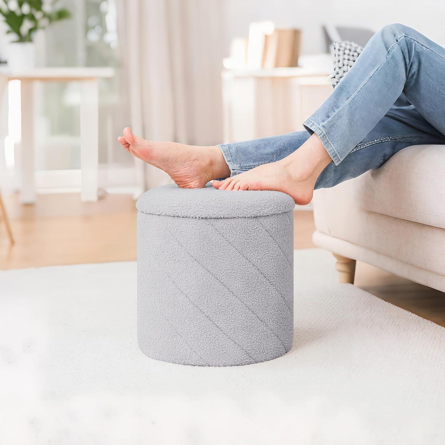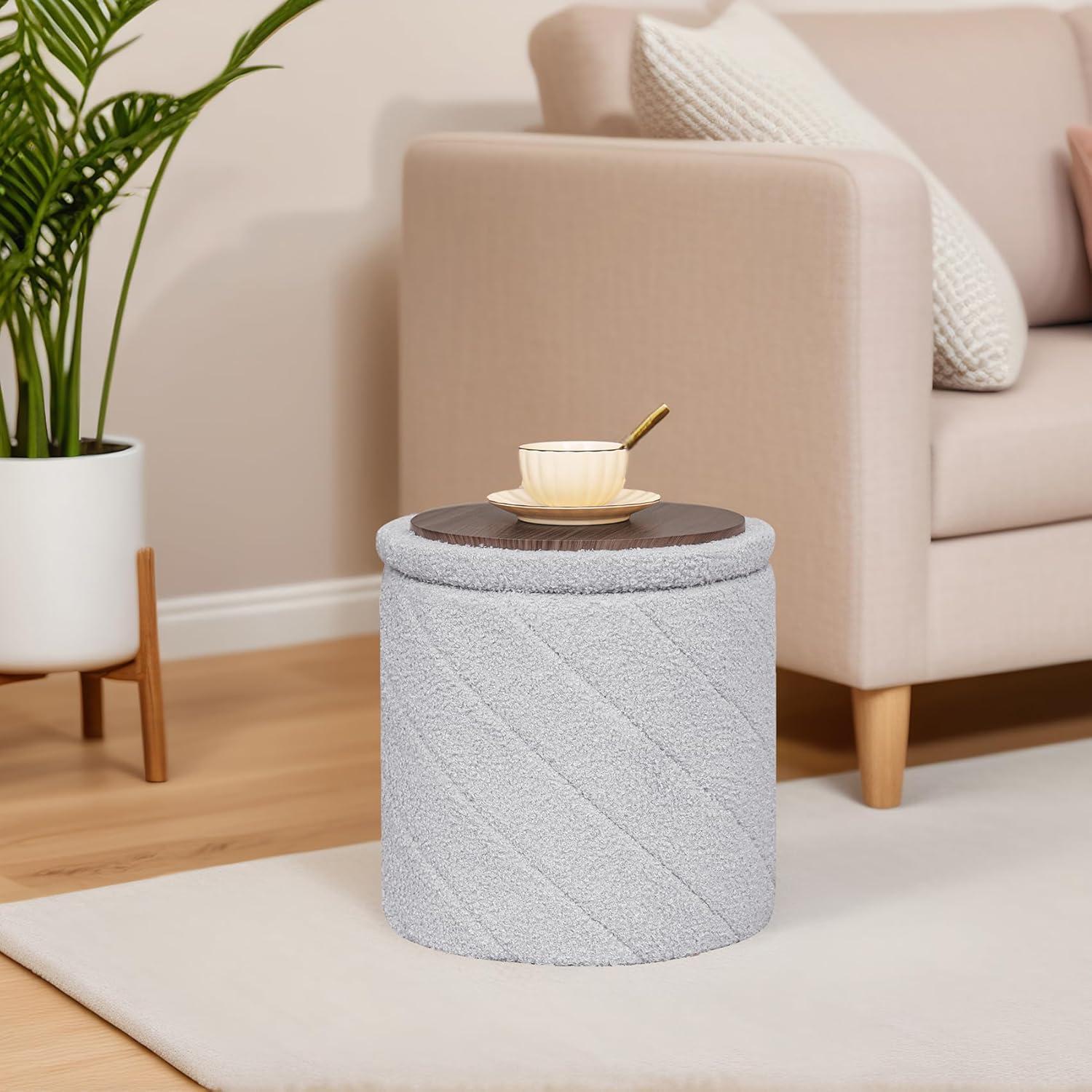 B FSOBEIIALEO Ottoman with Stroage, Boucle Round Storage Ottoman with Tray, Foot Rest Stool for Dorm Room, Living Room White, 16.93″x16.93″x17.72″(Grey)