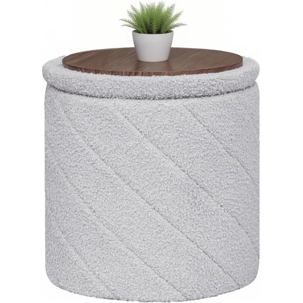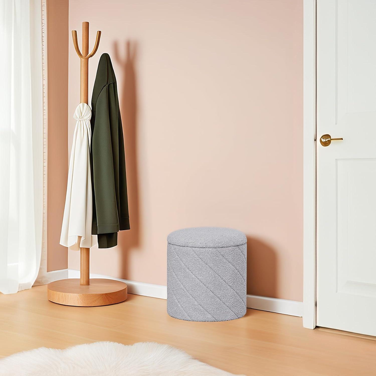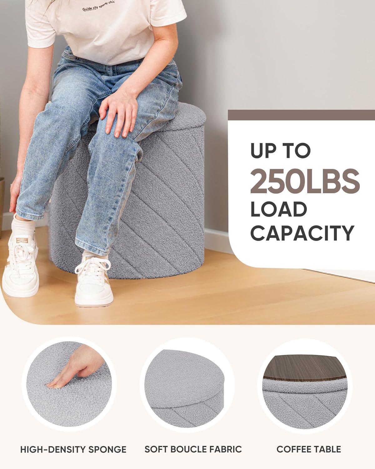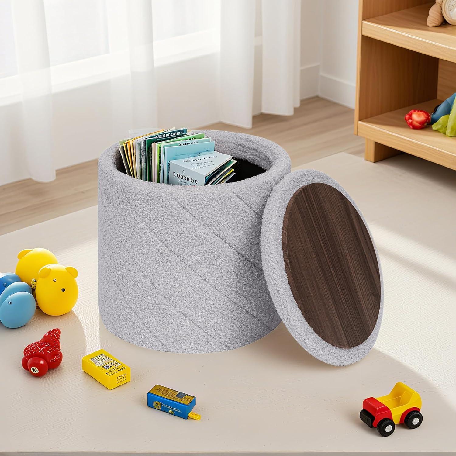 B FSOBEIIALEO Ottoman with Stroage, Boucle Round Storage Ottoman with Tray, Foot Rest Stool for Dorm Room, Living Room White, 16.93″x16.93″x17.72″(Grey)