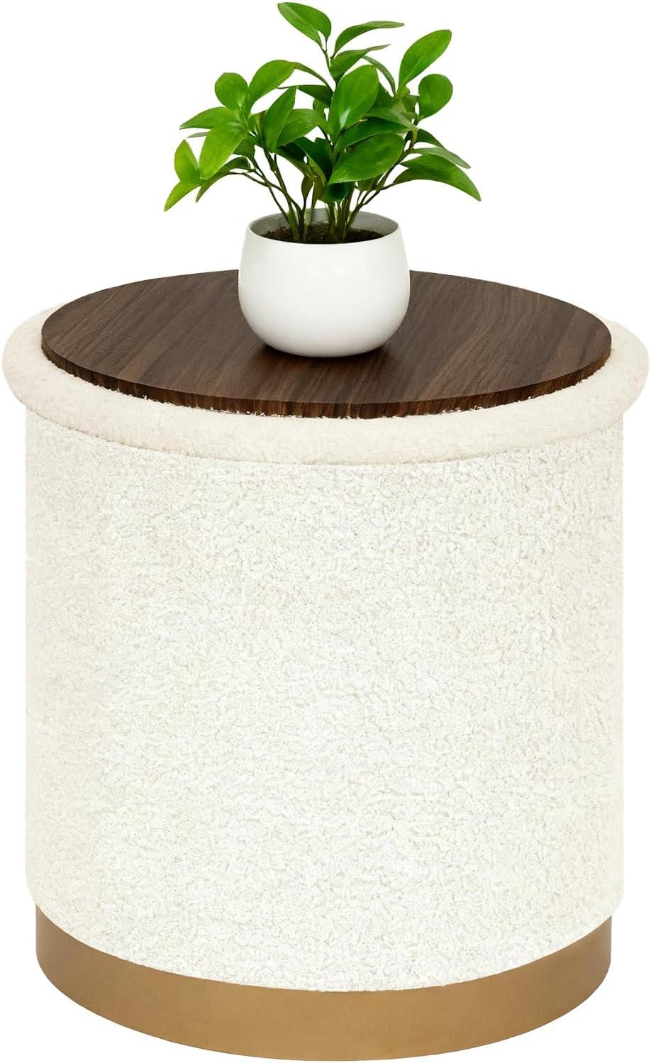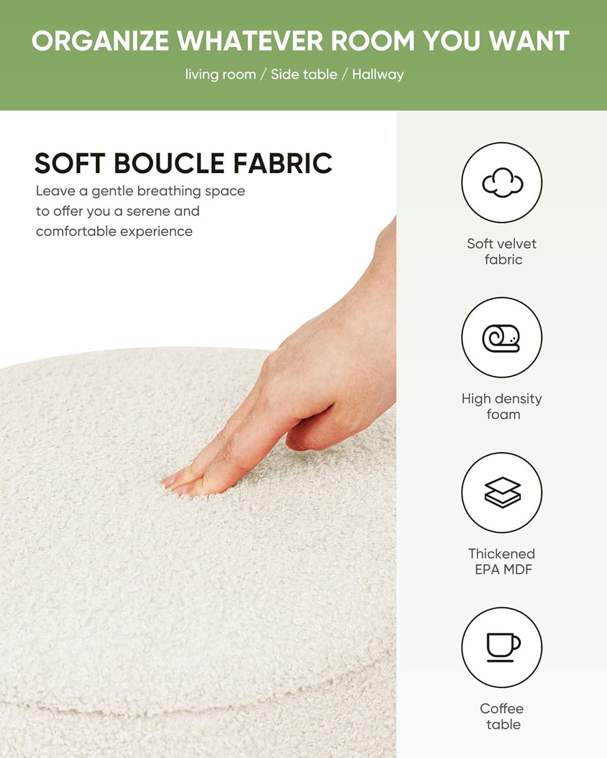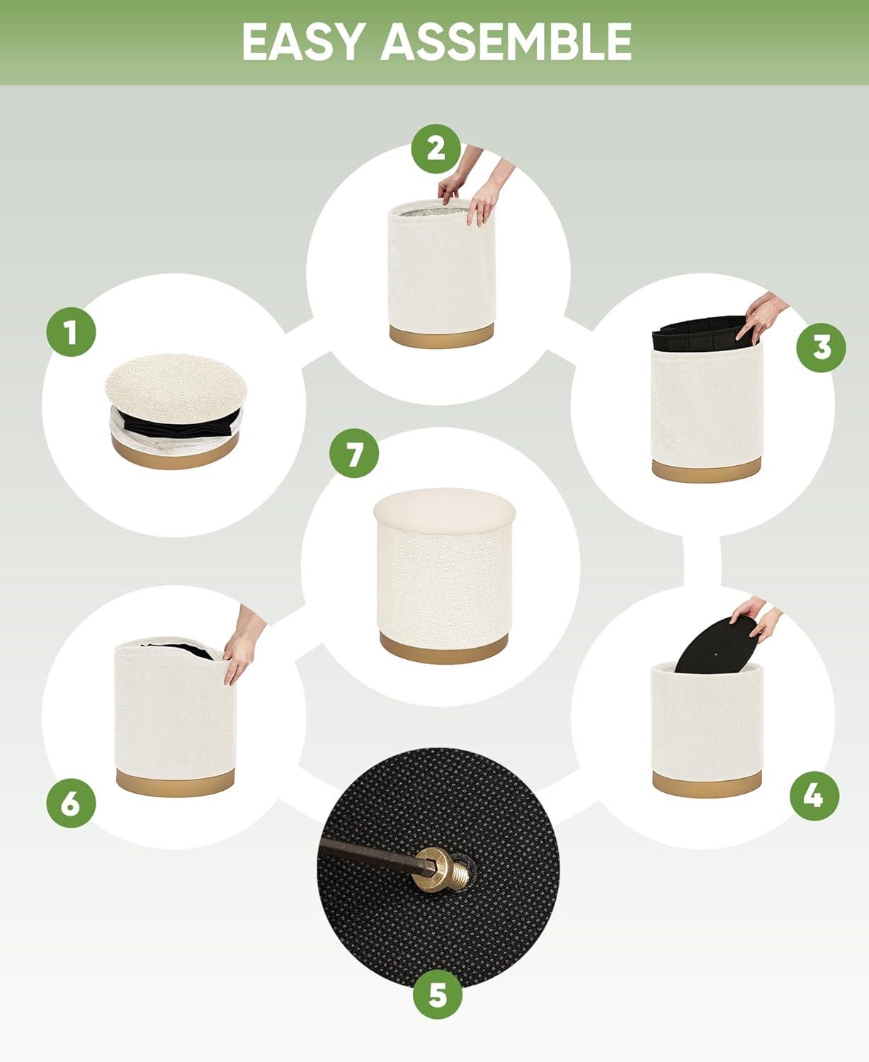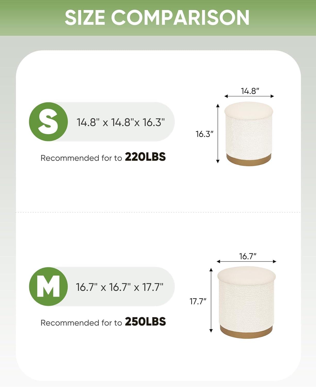 B FSOBEIIALEO Ottoman with Stroage, Round Boucle Storage Ottoman with Gold Plating Base,Foot Rest Stool for Dorm Room, Living Room Black, 16.73″x16.73″x17.72″(White)