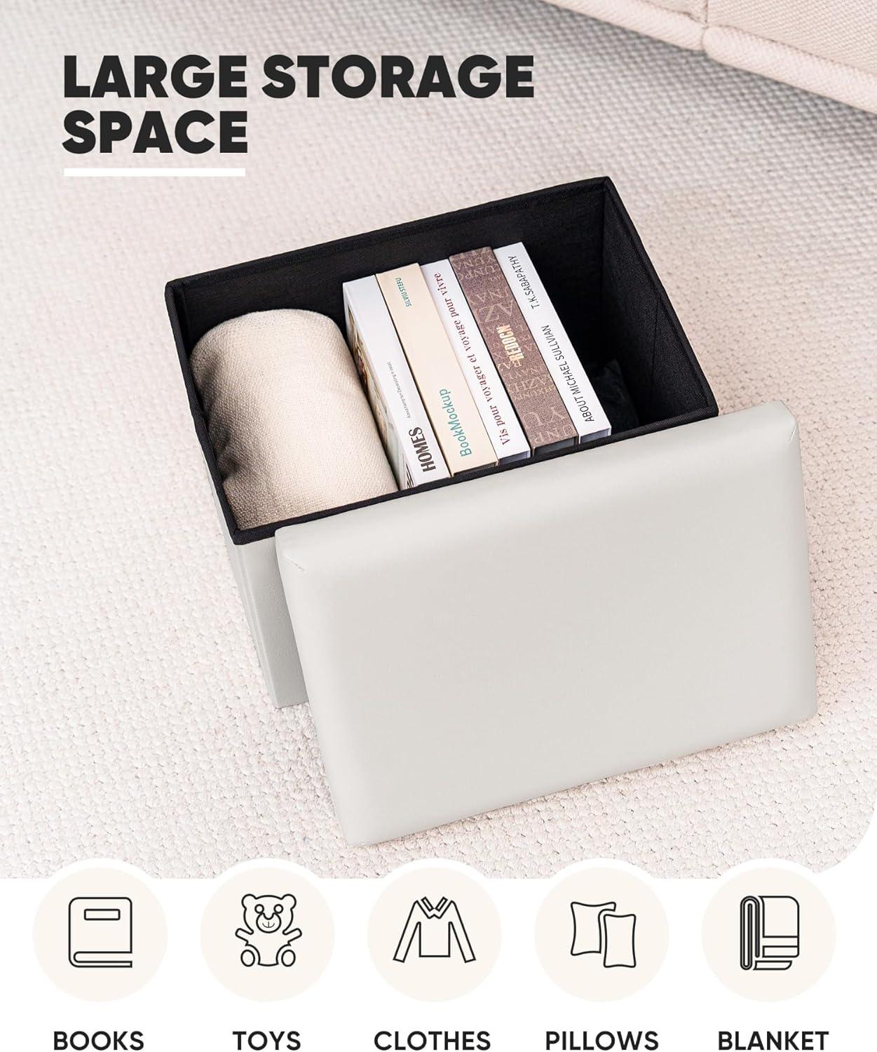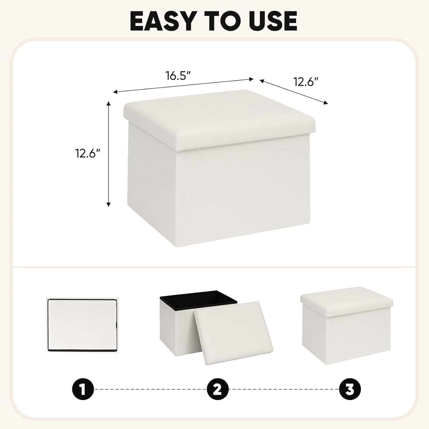 B FSOBEIIALEO Storage Ottoman Cube, Linen Small Foot Seat, for Living Room, Bedroom, Home Office, Dorm Storage Footrest Brown 11.8″x11.8″x11.8″(White 16.5″x12.6″x12.6″)